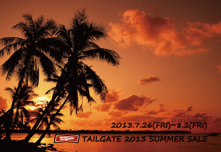 お待たせ致しました!! お待たせ致しました!!ご存知の方もいらっしゃると思いますが、明日7/26(FRI)~8/2(FRI)の期間SUMMER SALEを開催致します!!店内商品の中にはMAX80%の商品や目玉商品などもご用意しております!店頭にはTAILGETE2013AWの新作Tシャツも入荷しておりますので是非こちらもチェックして見てくださいね♪スタッフ一同皆様のご来店心からお待ちしております!TAILGATE CLOTHING 西崎
