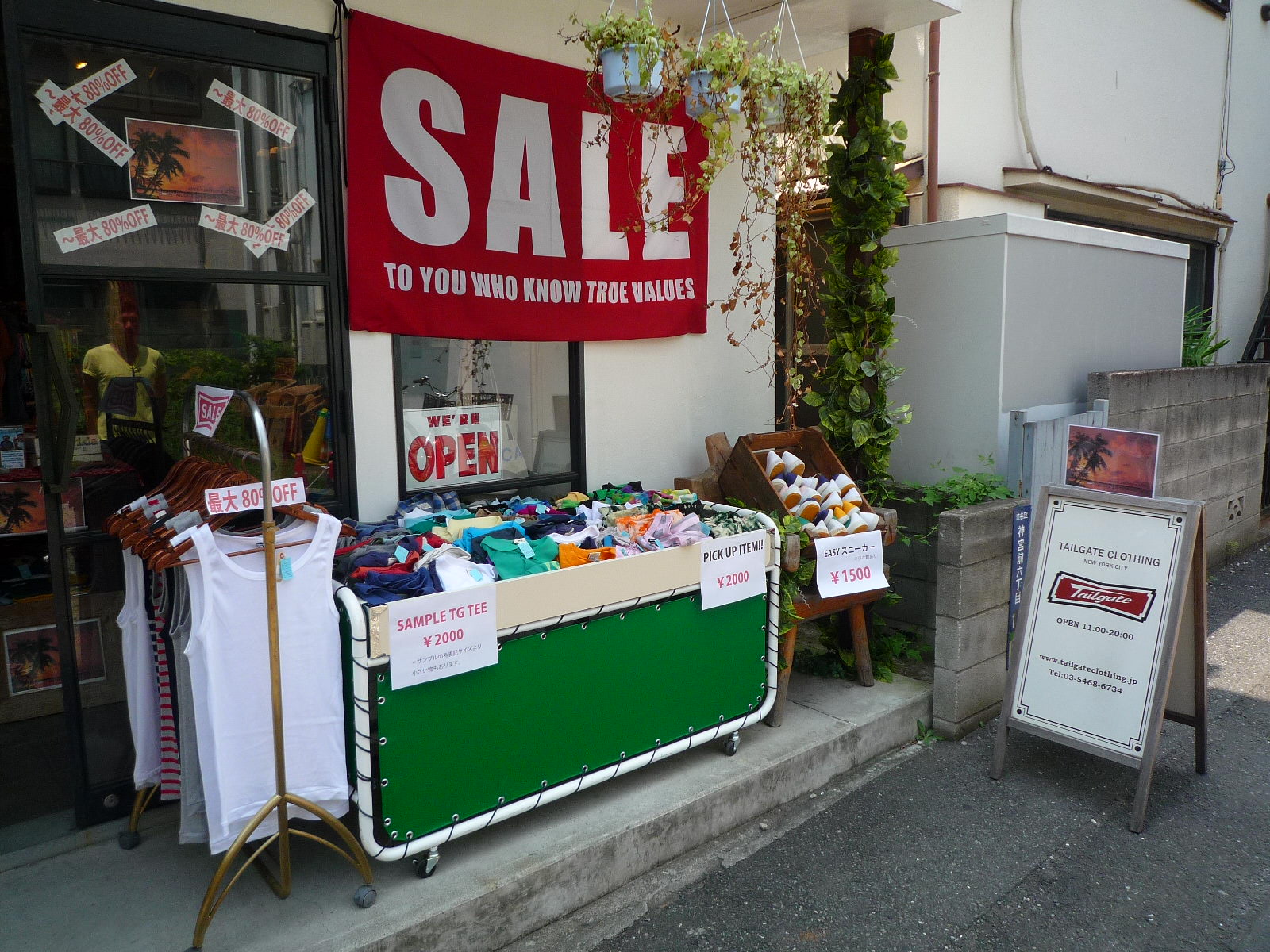 SALE 昨日からサマーセール開始しましたが初日から多くのお客様に来店して頂き誠にありがとうございます!!まだまだ良い商品残ってますよ♪ですが数は少ないのでお早めに~本日は店内外の写真アップさせて頂きます!!! サンプルTEEは表記は全てMですが物によってはXSくらいのものもありますよ!!!またピックアップアイテムも今使えるアイテムがたっぷりなのでかなりお買い得だと思います♪こちらは全て¥2000になります。 こちらはB品等のわけあり商品です!!洗えば落ちる汚れものや着用には問題ない物ばかりなのでオススメですよ!! 店内は一部商品以外はセールですのでかなりお買い得価格です!!今年大人気のイエローラットのボードショーツもプライスダウンしたのでなくなるの早そうですねー!!またTGTEEはかなり数少なくなっているのでお早めにどうぞ!!ちなみにテーブル下のTGTEEは競争率は高いですがめちゃくちゃお買い得プライスですよ~♪♪本日もスタッフ一同ご来店お待ちしております!!!!!高野