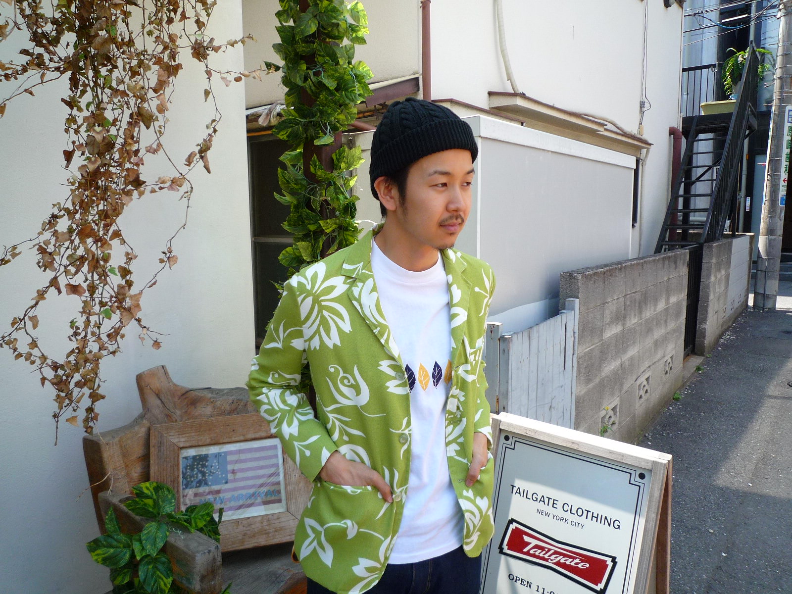 スタイルサンプル 最近のブログを見たらわかると思いますが最後に名前が書かれております!!元々ほとんど僕がブログ書いてたのですがこれからは他のスタッフにも書いてもらうので誰が書いたか分かるようにしてみました!!そこまでブログ更新多くないかもですが新商品紹介やスタイルサンプル等アップしていきますので宜しくお願いします。本日はジャケットを着たコーディネートを紹介します!!モデル STAFF深澤 184cm 75kg ジャケット BACK HEAD COTTON JACKET ■■■インナー ALTRU TANKTOP LIFE ■■■パンツ 私物シューズ 私物小物 Puravida アンクレットこのジャケットちょっと涼しくなってきたら羽織るのにちょうどいいですよ!!ディテールも細かいところまで拘ってますし、なにより今年流行りの柄ジャケがこの価格なのも嬉しいですよね♪袖を捲くってもいいですし、そのままでもいいのではないでしょうか!!そしてあえてインナーをプリント物にして抜け感を出す方が今っぽくて良いと思いますよ!!! このLIFEとコラボしているALTRUもかなりの人気ですよ~♪今年の夏前のスタイルは柄ジャケ+プリントTEE+ショーツで決まりではないでしょうか?もちろんプラヴィダもコーデのアクセントにお忘れなく!!笑皆さんも是非試してみてくださいね♪高野